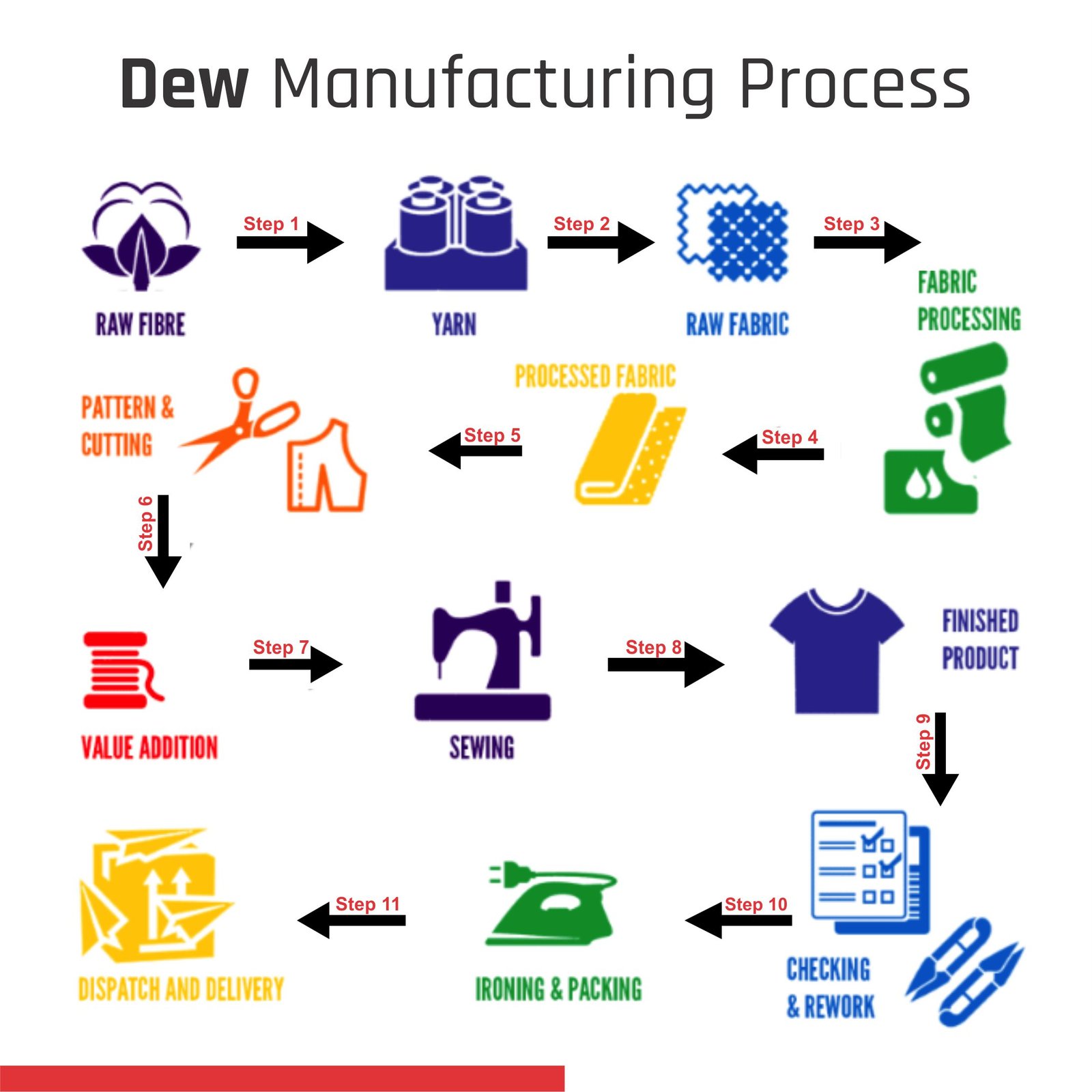 The manufacturing process for clothing is a complicated system of processes. It includes design, production, distribution, and retailing. .The design process includes creating a garment, developing the pattern from which it will be made, and drawing up the production process. It also includes looking at potential hazards for human health and safety. The production process involves converting fabric (mainly cotton) into yarn, weaving the yarn into cloth, cutting cloth to make patterns or garments in different sizes, sewing seams together with thread before printing textiles using dyes or dyeing textiles using natural sources like plants or animals. The distribution process includes getting the product to the retailer’s warehouse, stocking and displaying products, providing customers with quality service, and collecting payments. Finally, the retailing process includes selling clothing to consumers at a profit. The manufacturing process for clothing is a complicated system of processes.